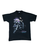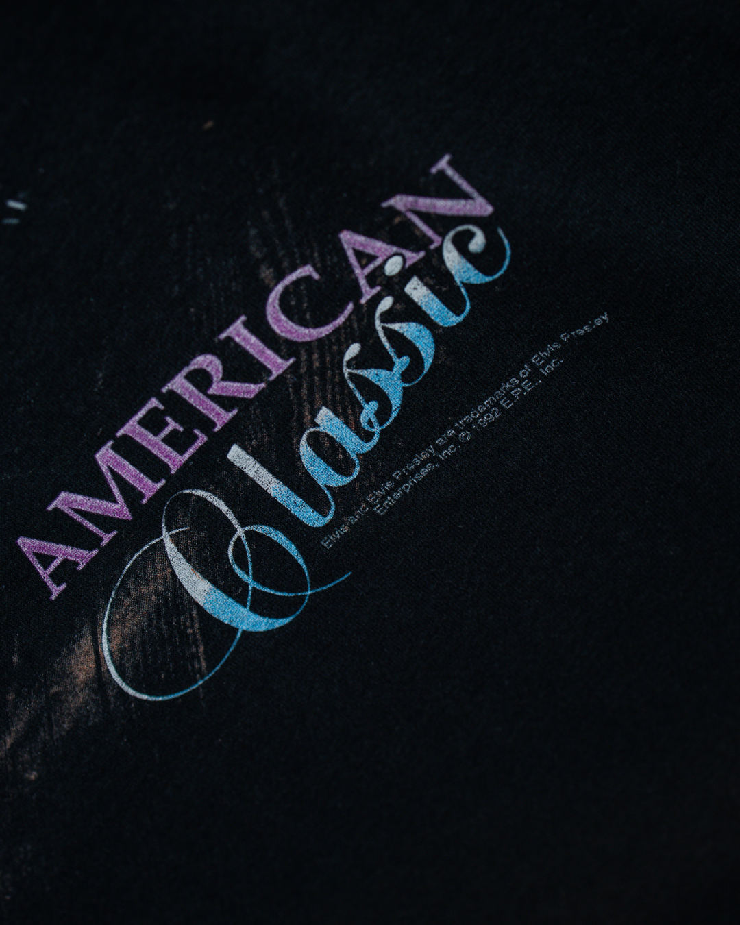 This Elvis tee merges the King of Rock and Roll with classic motorcycle imagery, a combination that celebrates both American music and biker culture. Elvis merch from the 1990s kept his legend alive for new generations of fans and collectors.