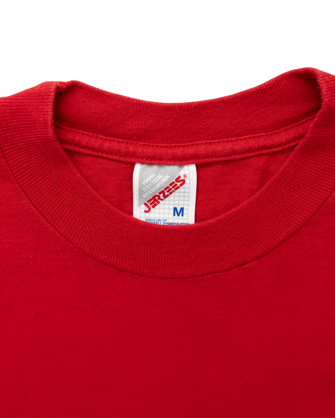 1990s T&C Surf Designs Pearl City, Hawaii tee in red represents the enduring influence of T&C Surf Designs, offering a vivid nod to Hawaii’s local surf scene and its classic graphics.