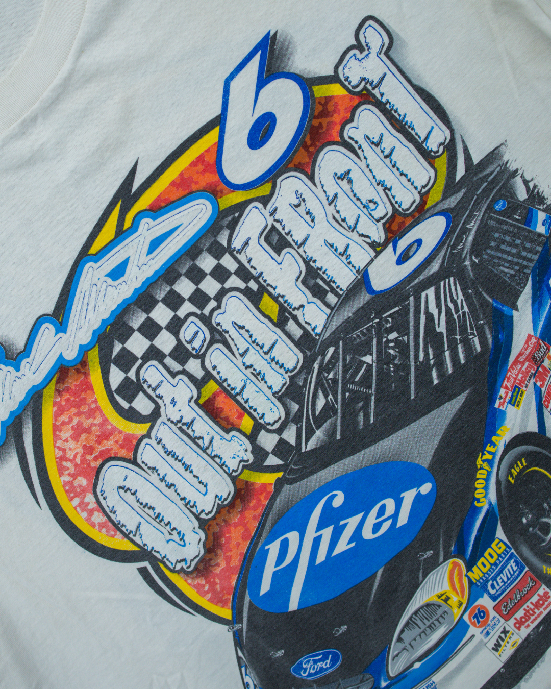 Mark Martin was one of NASCAR’s most consistent and respected drivers, and this tee celebrates his Out In Front persona. Vintage NASCAR apparel is beloved for its bold sponsor graphics and connection to racing history.
