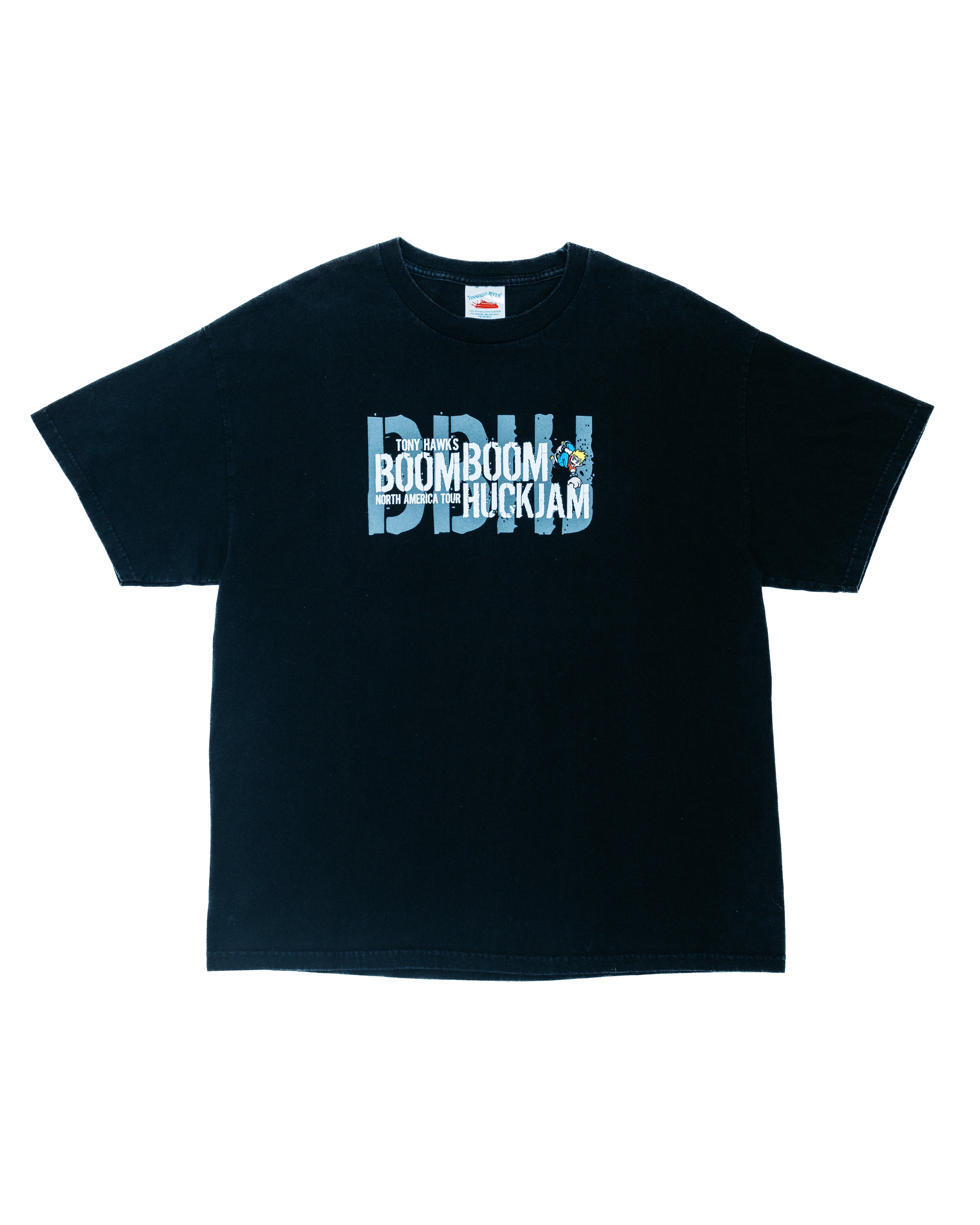 2002 Tony Hawk’s Boom Boom Huck Jam Tour Tee, celebrating Hawk’s groundbreaking live skate tour that merged extreme sports and punk rock. A collectible piece from the Birdhouse x M Star capsule commemorating early-2000s skate history.
