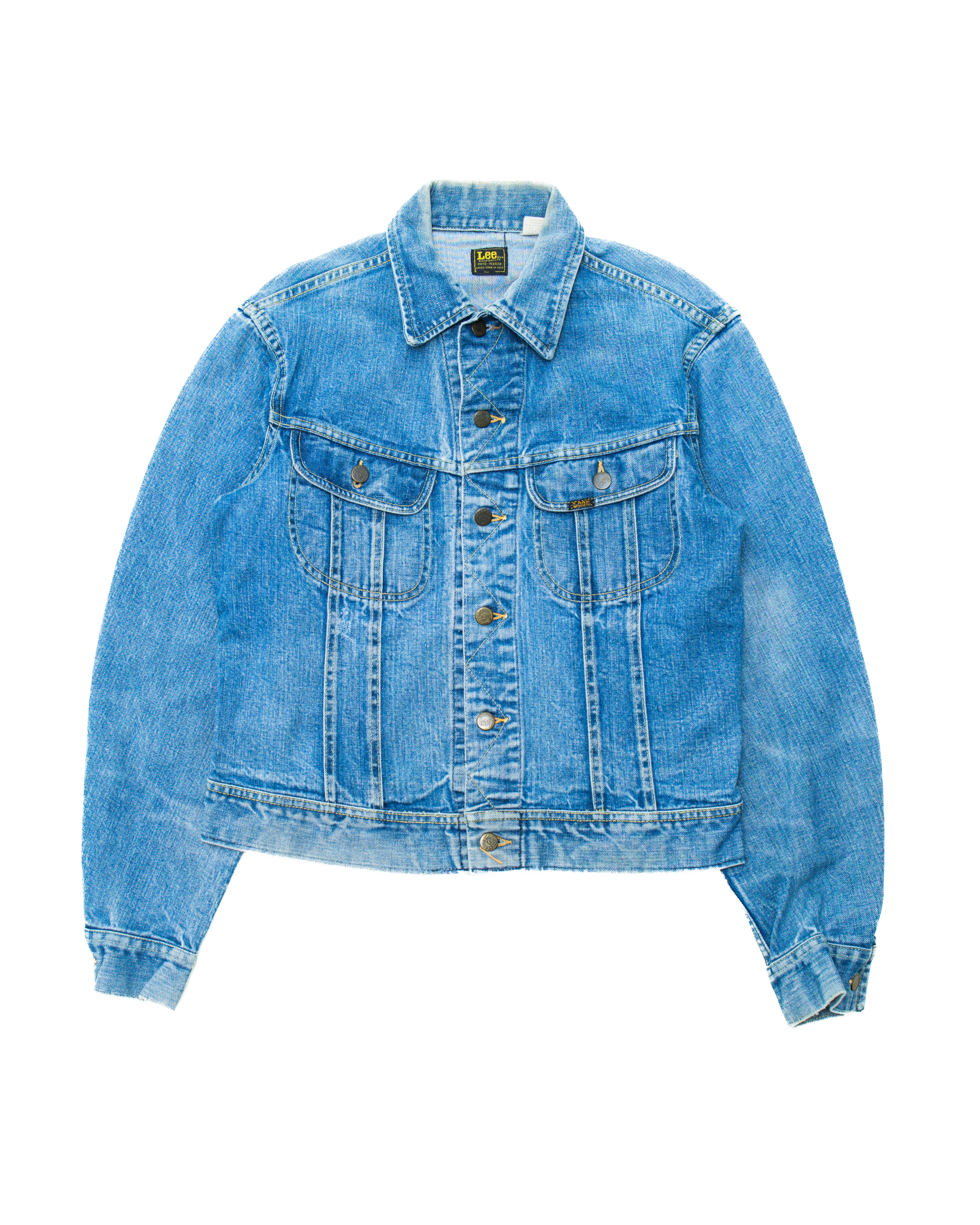 1970s Lee Sanforized Denim Trucker Jacket, crafted during denim’s golden era with signature stitching and brass hardware. A key part of the Denim Dudes collection celebrating timeless American denim construction.