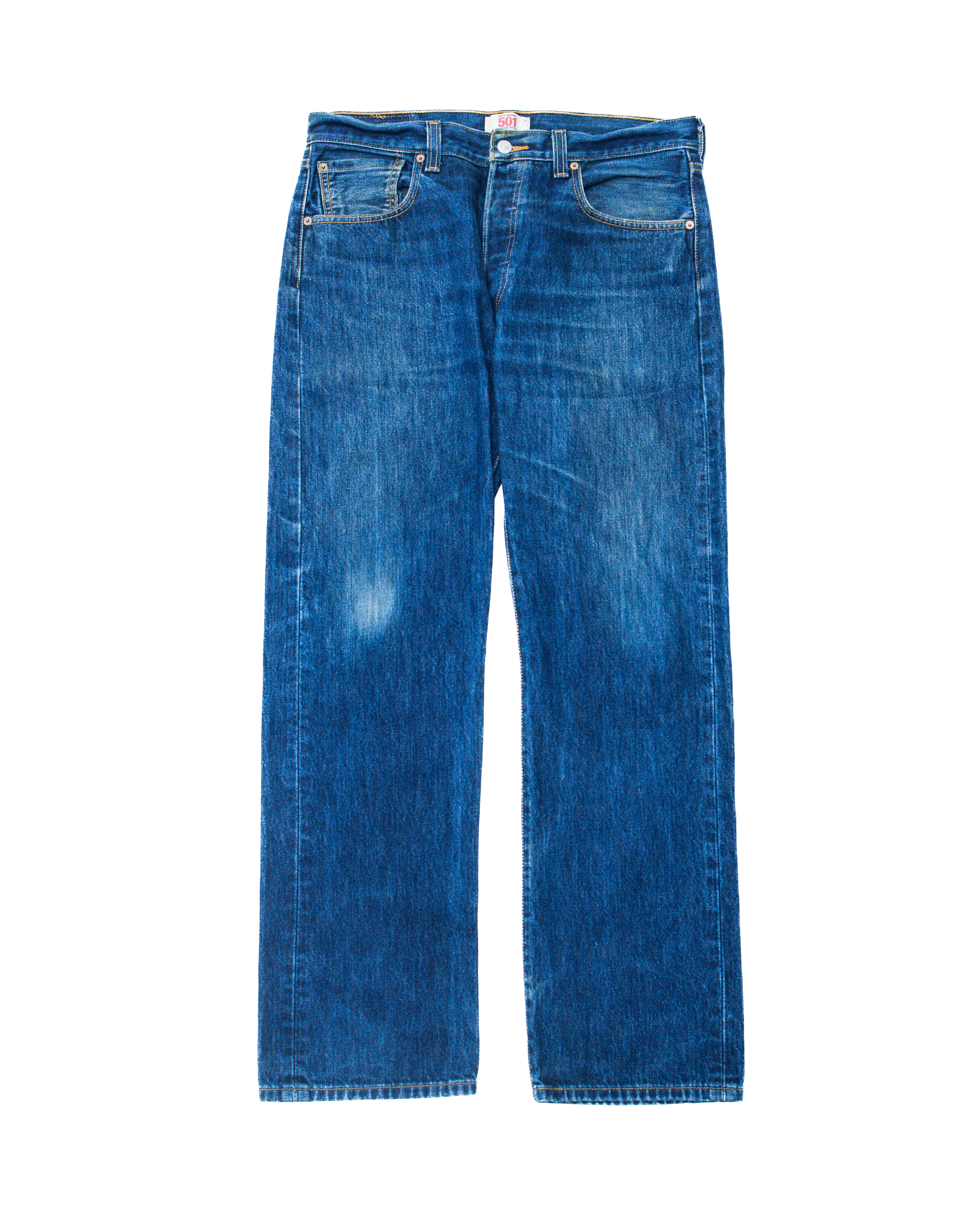 2000s Levi’s 501 Dark Wash Denim with natural wallet wear marks—an iconic representation of the world’s most famous jean. A piece from the Denim Dudes collection showcasing authentic wear and timeless Levi’s construction.