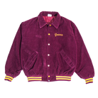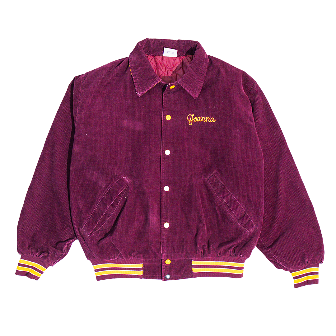 A rare corporate gem, this Kenko bomber jacket boasts intricate chain stitching and bold purple corduroy. Workwear of the '80s often blended function with brand identity, making this piece a standout. Its vintage build and eye-catching embroidery make it a unique layering option for modern wardrobes.
