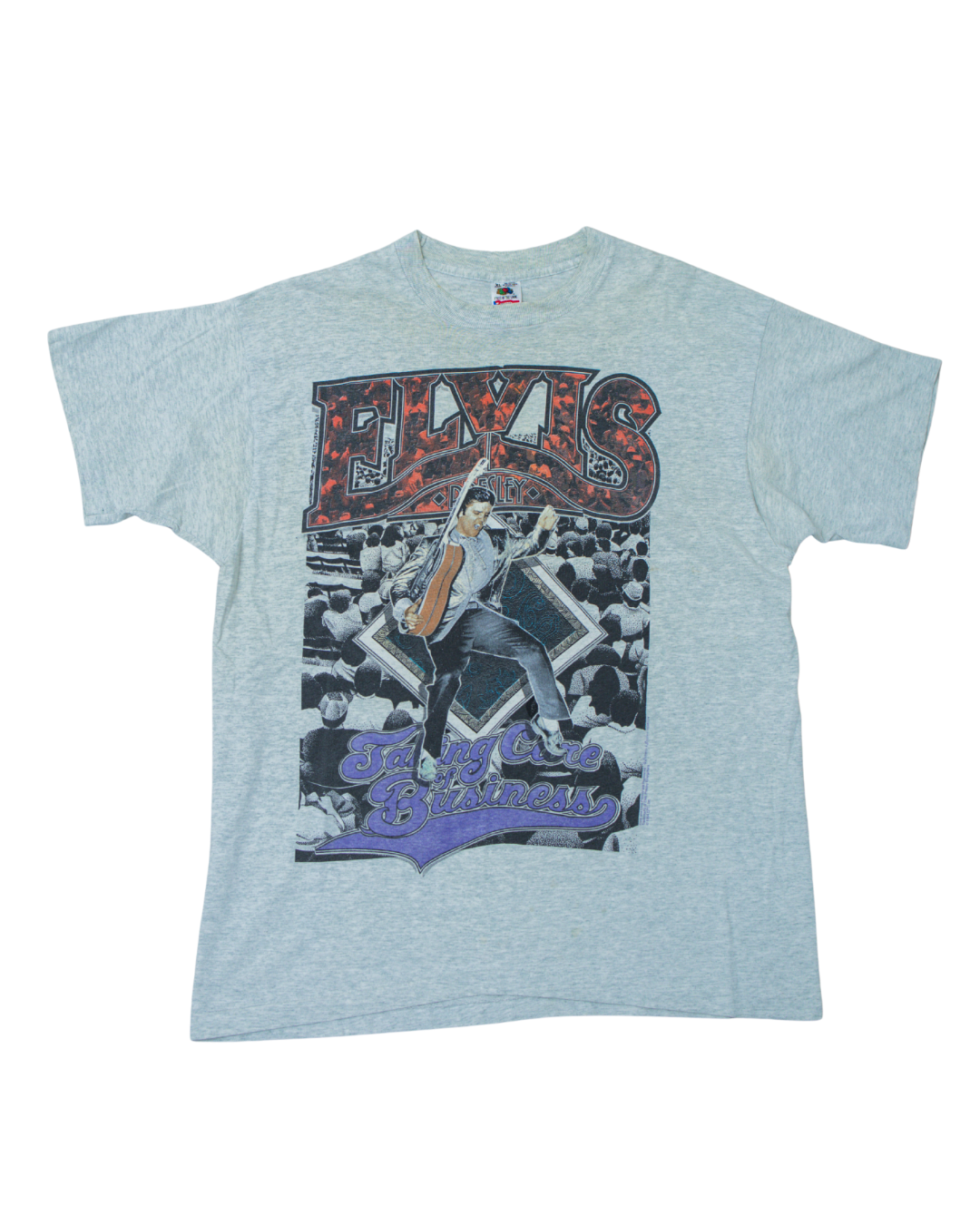 Elvis’s Taking Care of Business slogan was more than a motto—it became a key piece of his brand identity. This 1990s tee taps into that legacy, offering both rock and Americana appeal.