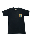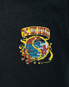 1990s T&C Surf Designs Hawaii Made in USA Yin Yang Logo tee in black showcases the classic Hawaiian surf brand known worldwide for bold graphics and a deep connection to surf culture, perfect for collectors of authentic surf apparel.