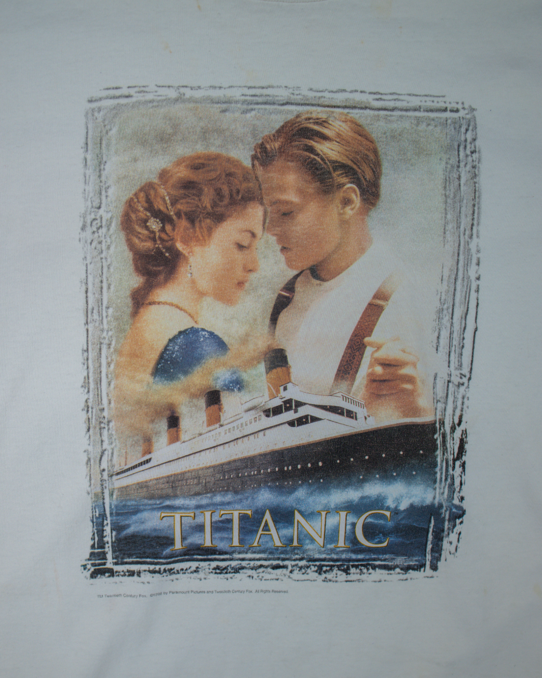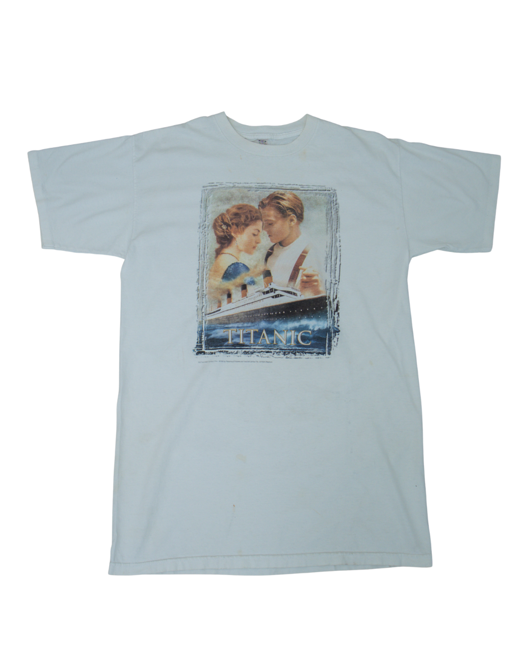 Following the massive success of James Cameron’s Titanic in 1997, official movie merchandise became instantly collectible. This 1998 poster-style tee reflects the film’s cultural dominance, winning 11 Oscars and becoming the highest-grossing movie of its time.