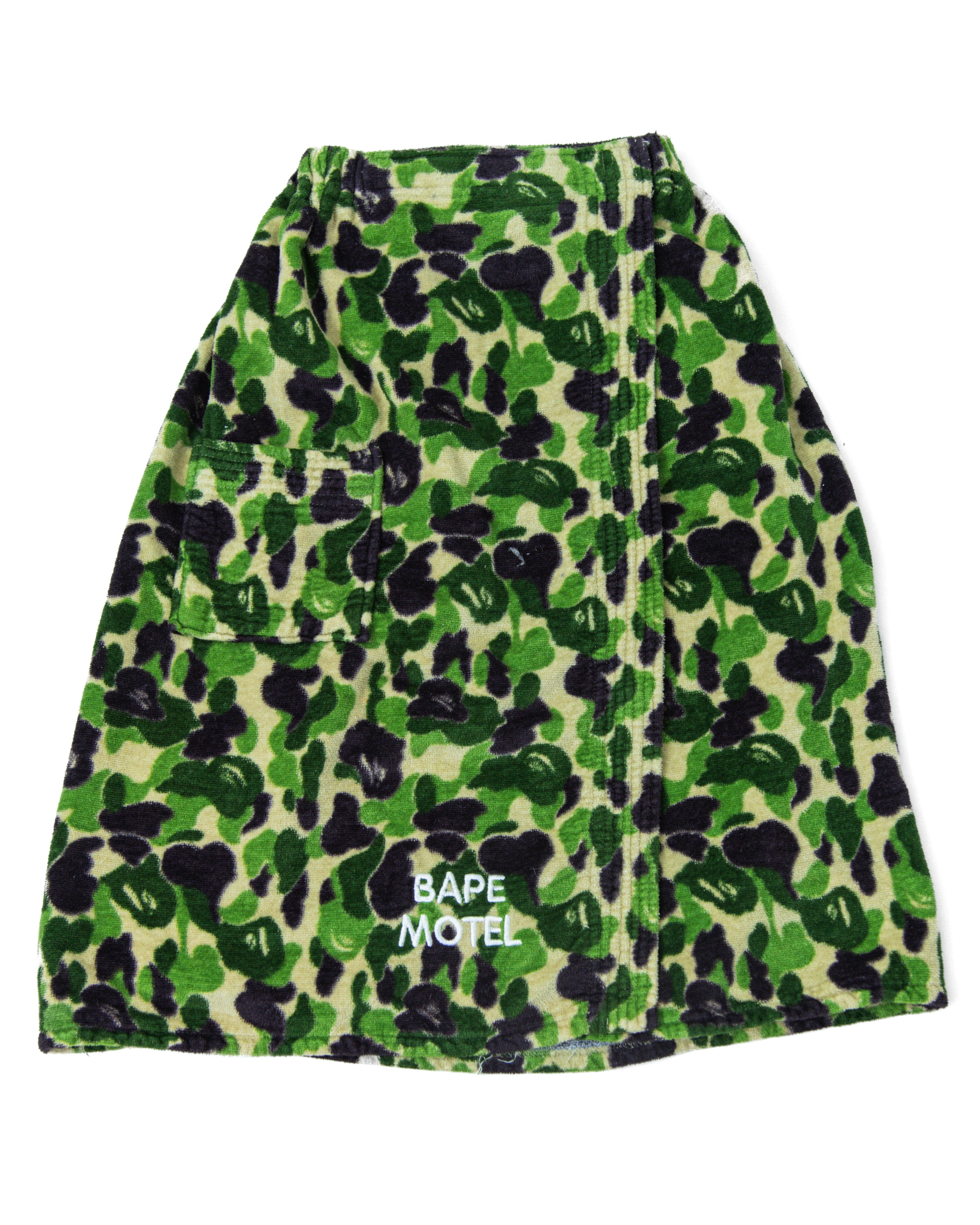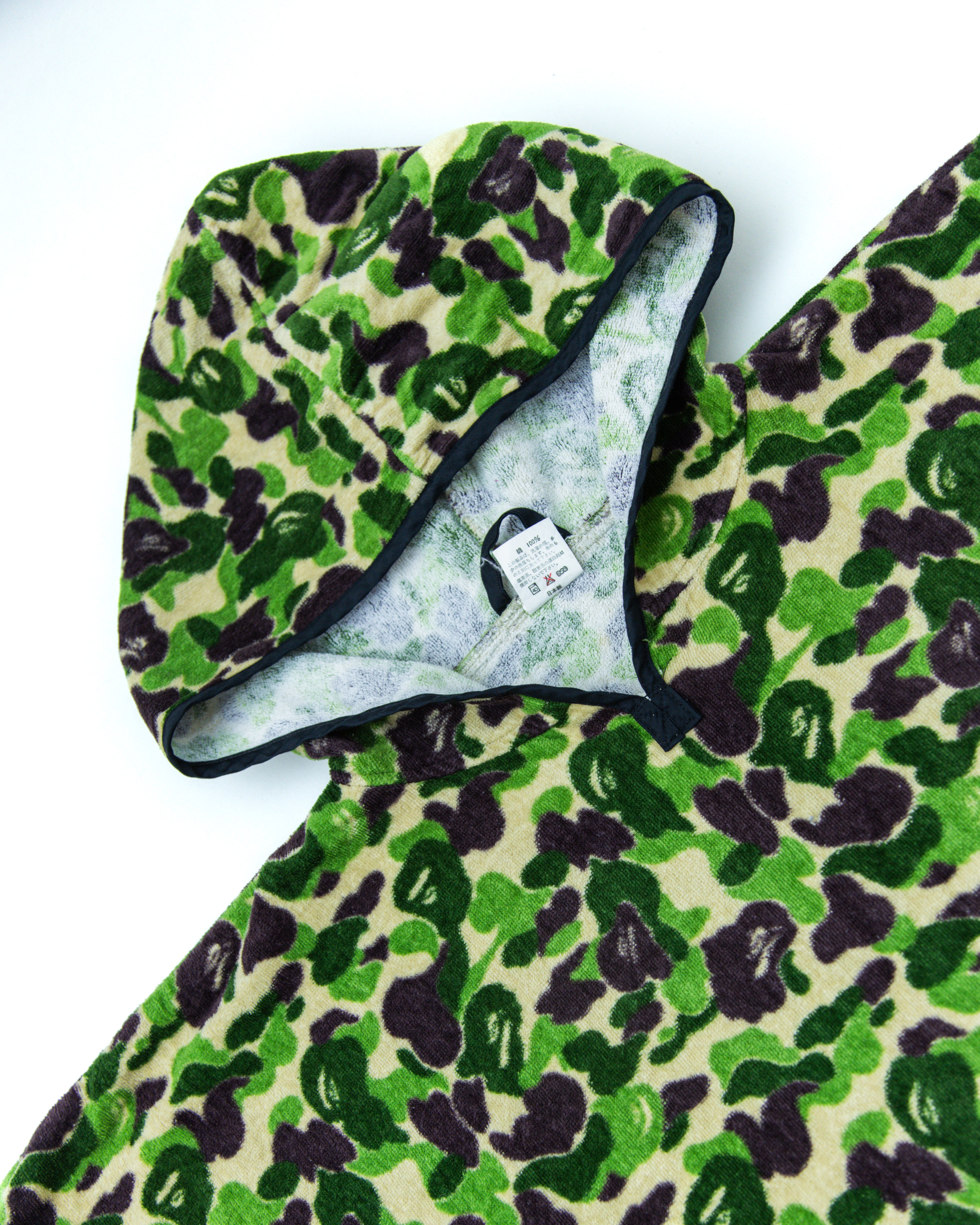 Early 2000s BAPE vacation terry cloth camo set featuring their signature all-over camo in a rare matching short set. Highly sought after for its laid-back yet unmistakably bold aesthetic, classic Nigo-era flex.