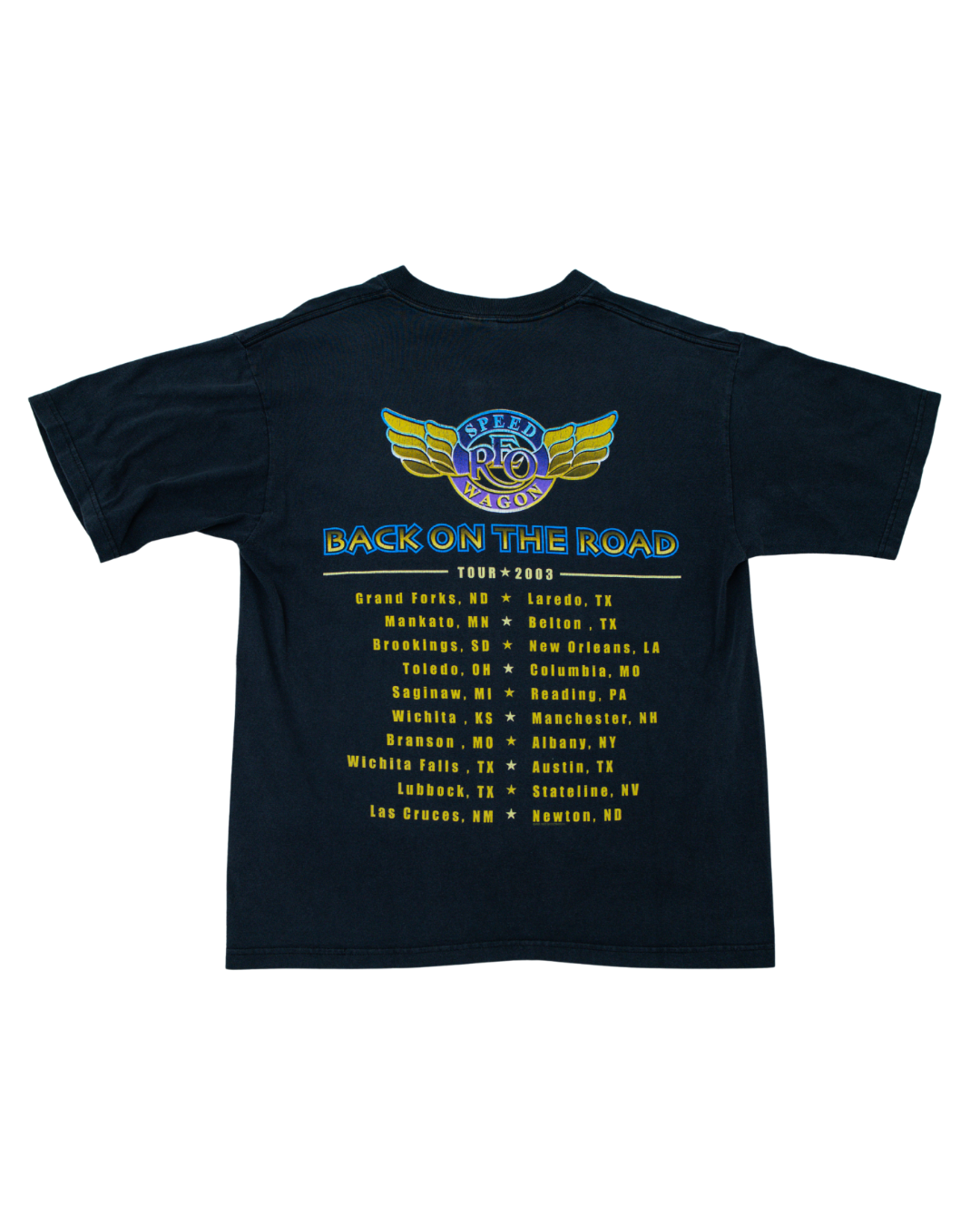 REO Speedwagon’s Back on the Road tour in 2003 celebrated their enduring legacy as arena rock giants. Vintage tour shirts from their later years still carry the energy of their classic hits era.