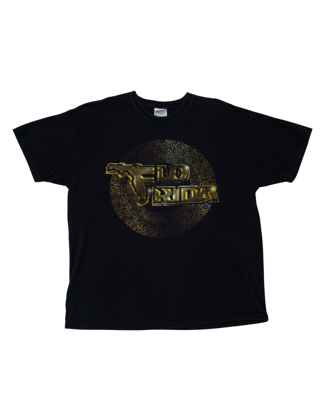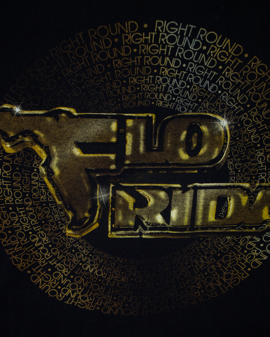 This tee marks the success of Flo Rida’s 2009 hit Right Round, a chart-topping single that fused pop, rap, and club-ready beats. Concert and promo tees from this era highlight the height of late-2000s radio dominance and early digital music culture.