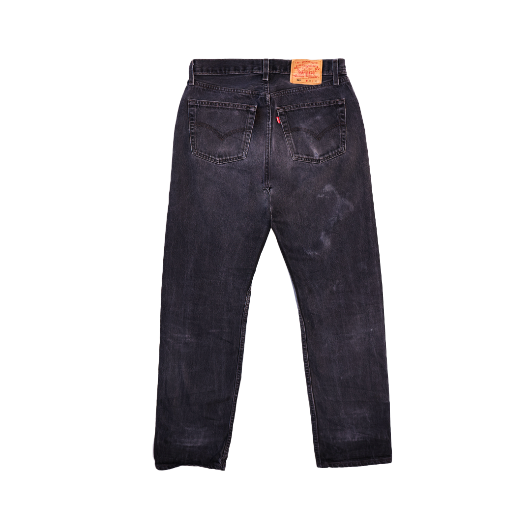 Black wash 501s with slight fade. Very clean pair. The standard Levi's fit.