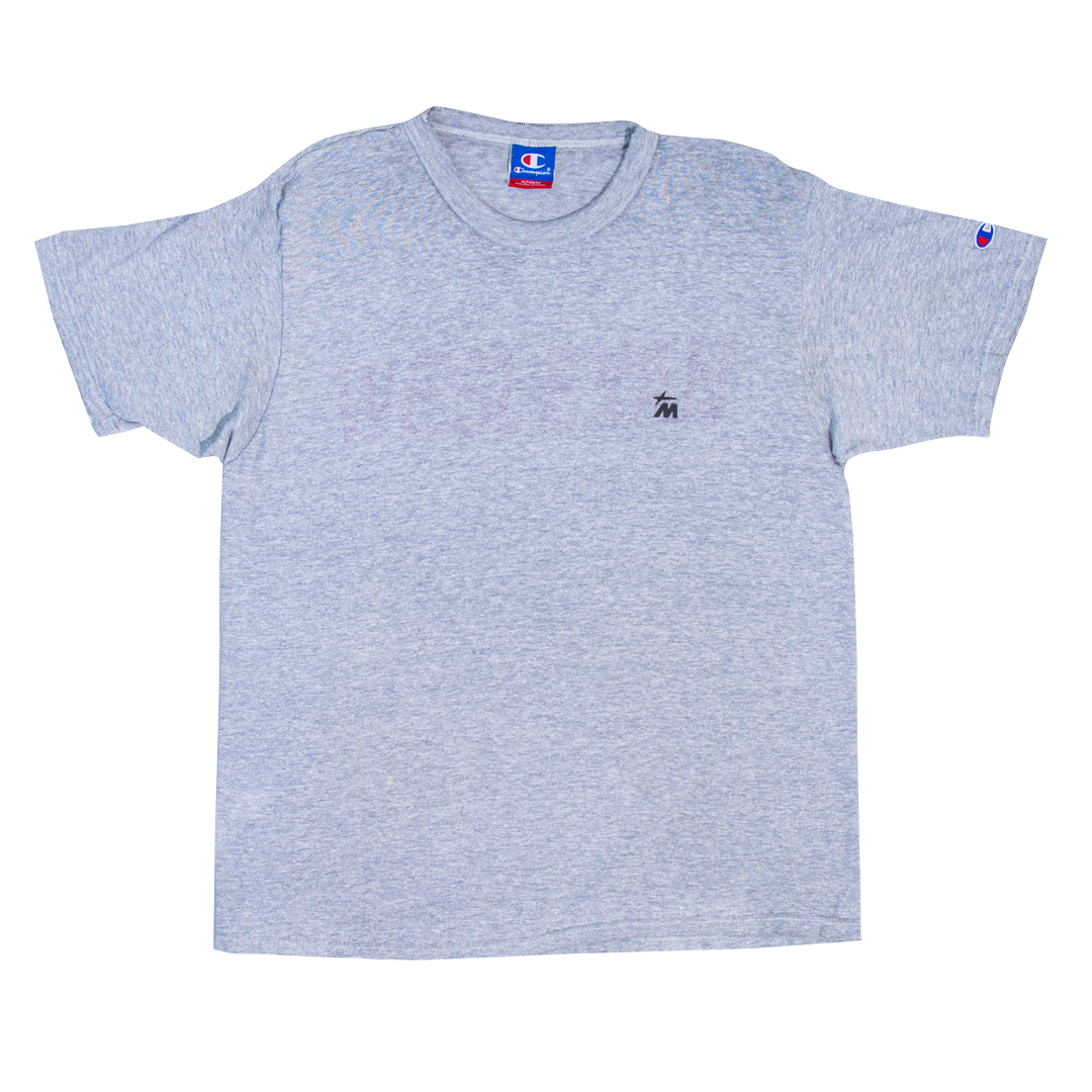 This 1980s Champion tee, pulled from the MNTGE archives, features the M-Star laser printed atop an extremely faded Wesleyan graphic—a nod to collegiate design and campus culture. As a 1-of-1 piece, this tee is an early concept that didn’t move past the sample stage but remains a timeless vintage gem. Its soft, worn-in feel and classic collegiate style make it perfect for layering under a varsity jacket for that retro preppy look.