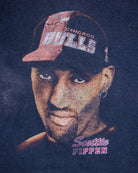 A classic from the Bulls dynasty era, this tee celebrates Scottie Pippen at the height of Chicago’s championship run. Vintage Bulls pieces tied to the ’90s glory years remain highly sought after, especially those highlighting key players from the six-title roster.