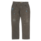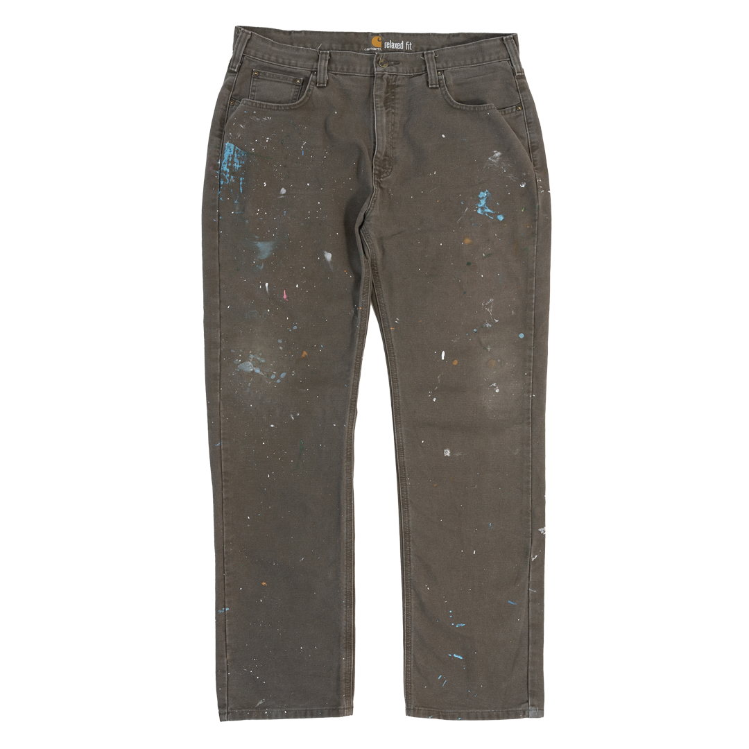 These olive green Carhartt pants are a workwear classic with added character from paint splatter details. Ideal for adding texture and depth to any outfit.