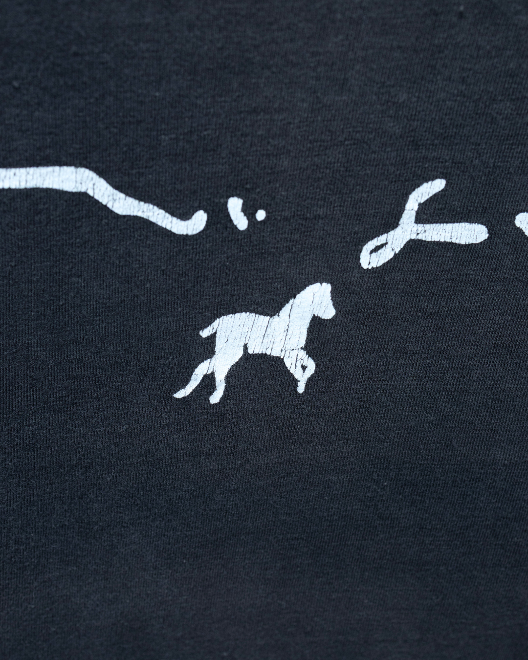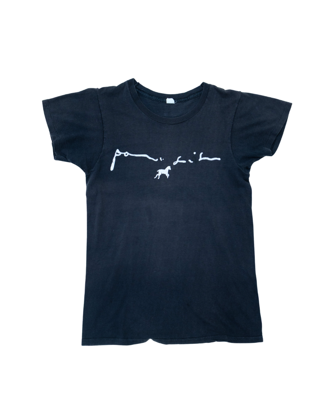 An extraordinary piece of music history, this 1970s Patti Smith “Horses” tee is as close as it gets to a wearable artifact from one of punk poetry’s founding voices. True period-correct Patti Smith merch is virtually nonexistent, especially tied directly to her landmark debut album Horses — a record that fused rock, punk, and beat-inspired lyricism. The minimalist script graphic mirrors the album’s stark black-and-white aesthetic, making it an understated but powerful statement for collectors. Essential listening from this era includes “Gloria,” “Birdland,” and “Free Money.”