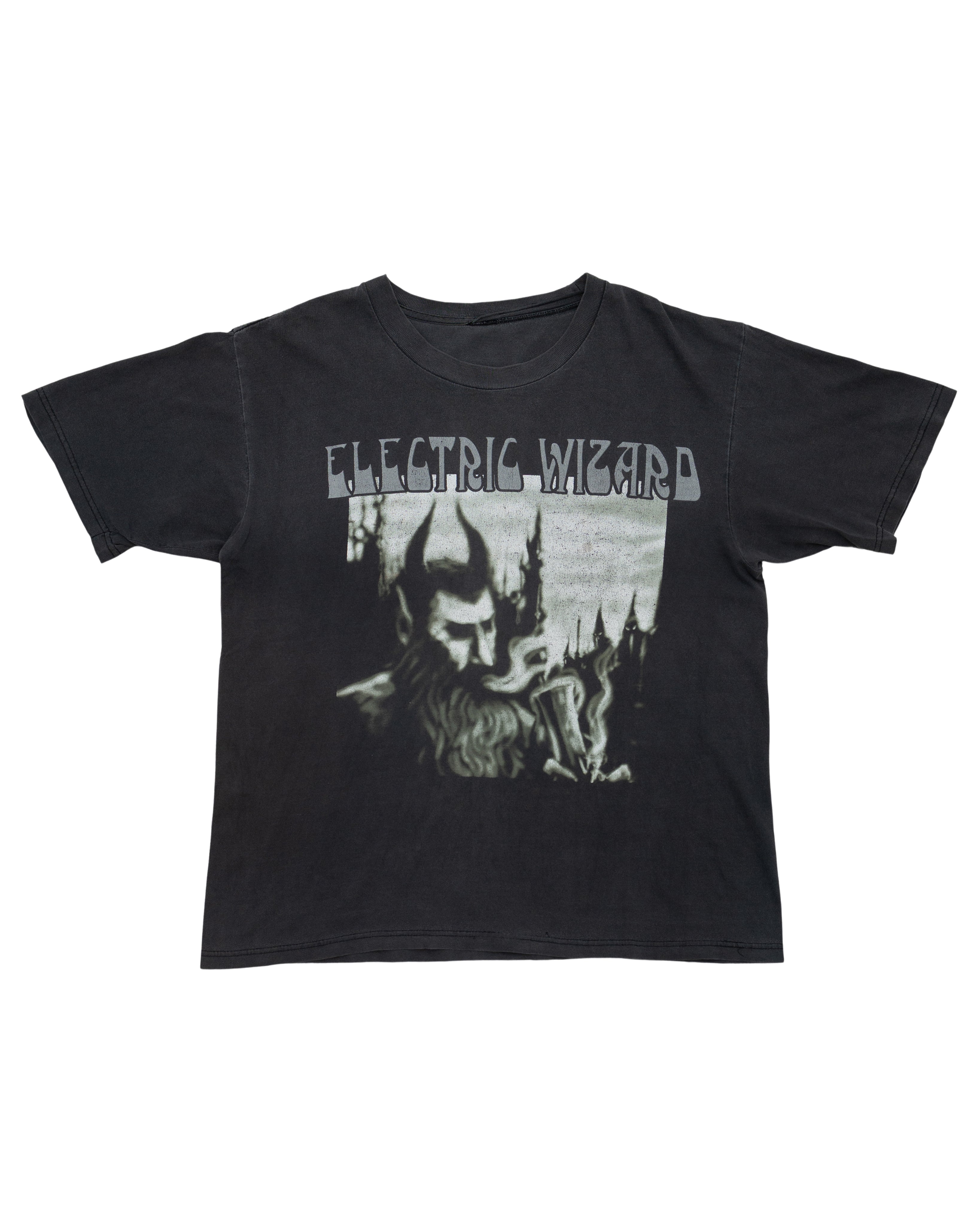 This 2000 Electric Wizard tee features the artwork from *Dopethrone*, one of the heaviest doom metal albums of all time. Crushed and sludgy, just like the record itself.